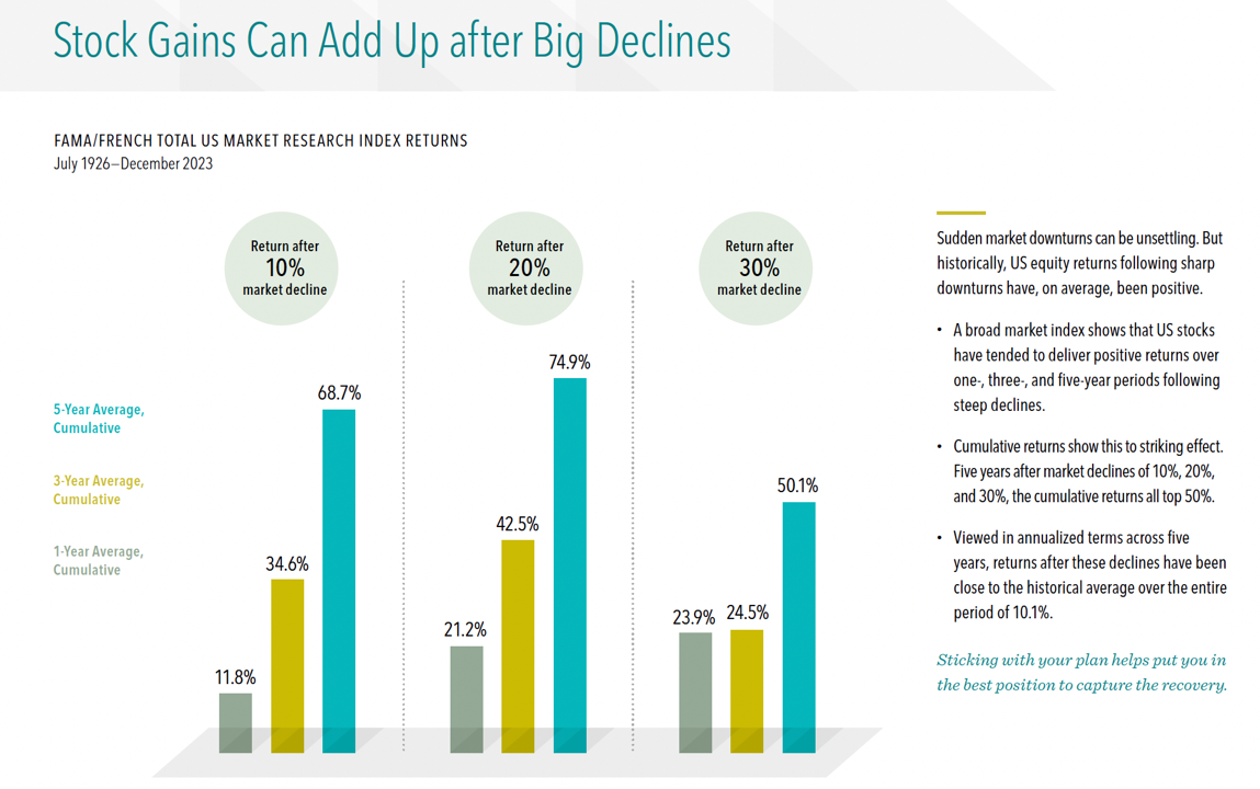 The last two days have reminded investors that markets process new information instantly, quickly adjusting prices up or down based on the evolving landscape. Prices adjust in real time on a granular level when a company misses earnings, or on a global level when new policy is announced. That said, it’s also a time to remind ourselves that attempting to outguess, or predict, market direction is not an ingredient for success.